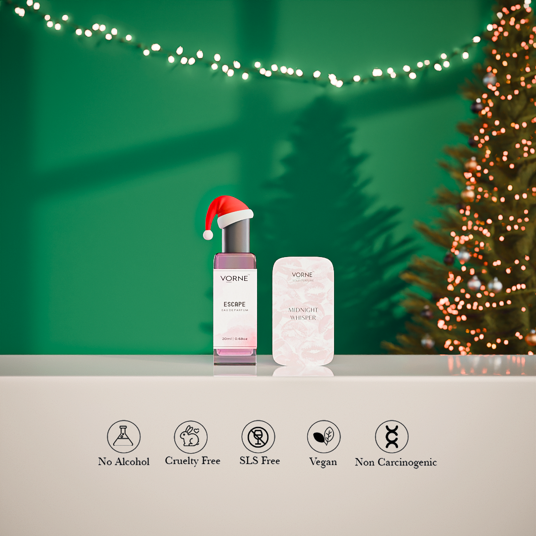 VORNE Escape Eau De Parfum & Midnight Whisper Solid Perfume Combo | Christmas Special Edition for Women (EDP + 12g Solid Perfume)