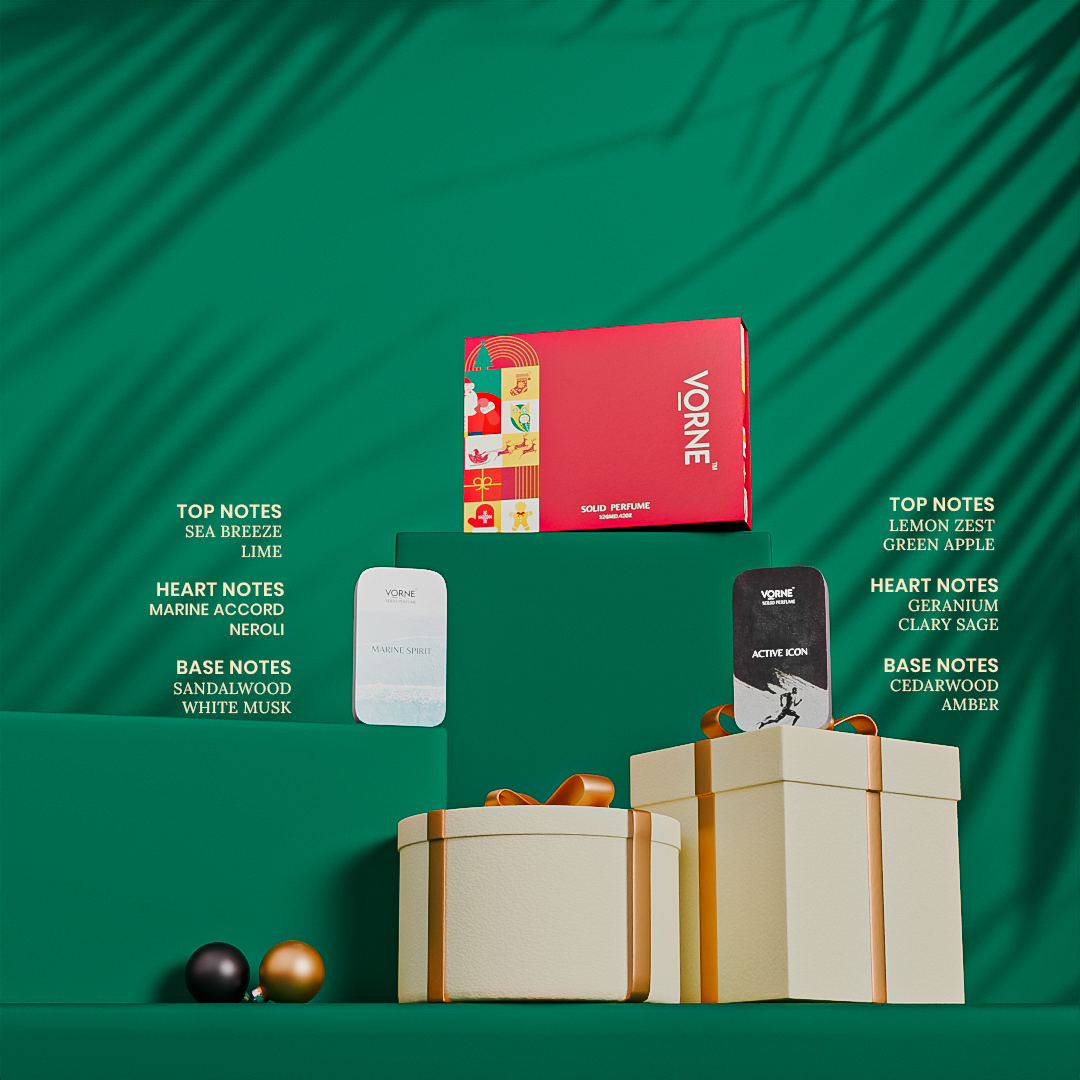 Celebrate this festive season with the VORNE Active Icon & Marine Spirit Solid Perfume Combo, a perfect Christmas and New Year pick for men. This refreshing duo is made for active, confident personalities who enjoy clean and energetic fragrances.