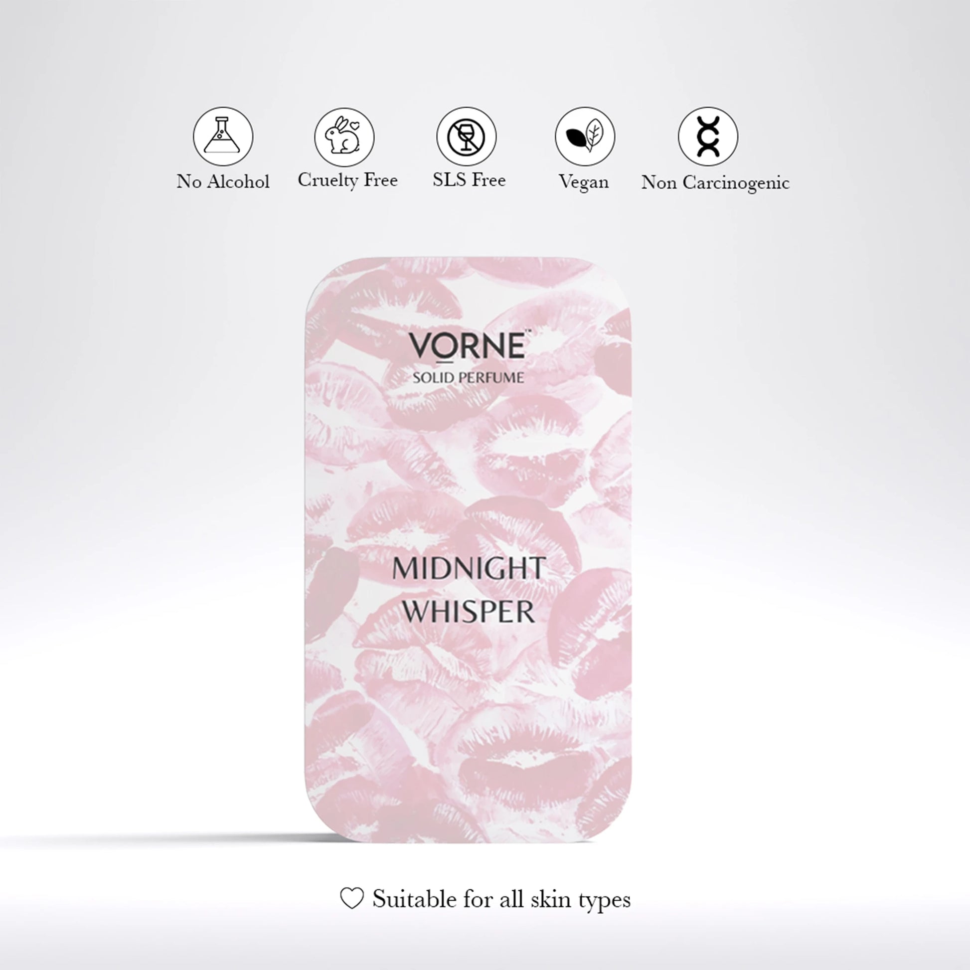 Whisper desire with VORNE Midnight Whisper – a deep, sensual blend of smoky incense, dark florals, and soft vanilla. Crafted for those unforgettable nights.